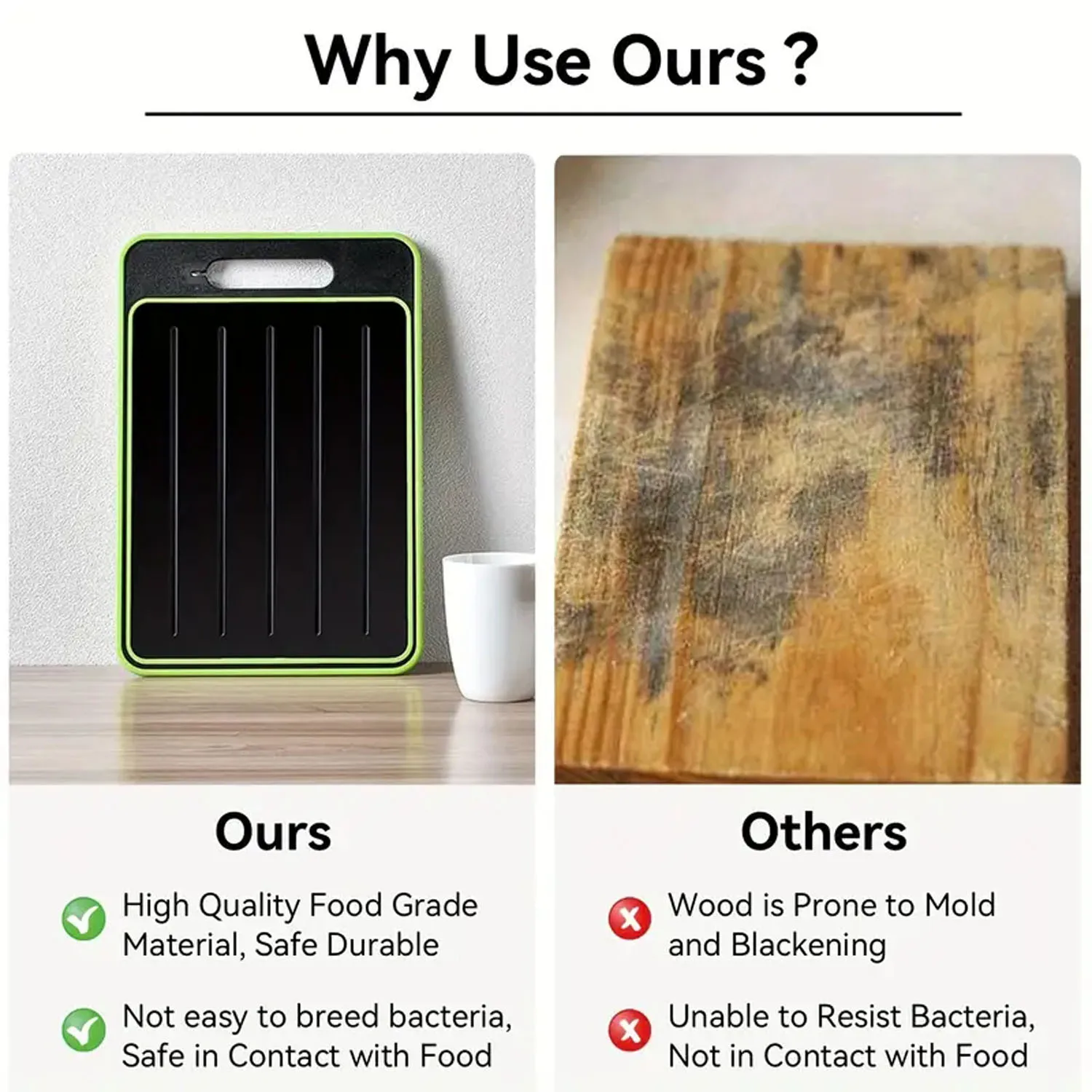 Cozimento eficiente: Nossa placa de descongelamento vem com tábuas de corte dupla face, que permitem uma preparação rápida de alimentos.Economize tempo, esforço e espaço em sua cozinha enquanto desfruta de descongelamento eficiente e preparação perfeita de alimentos.Torne a hora das refeições um prazer com este utensílio de cozinha essencial!